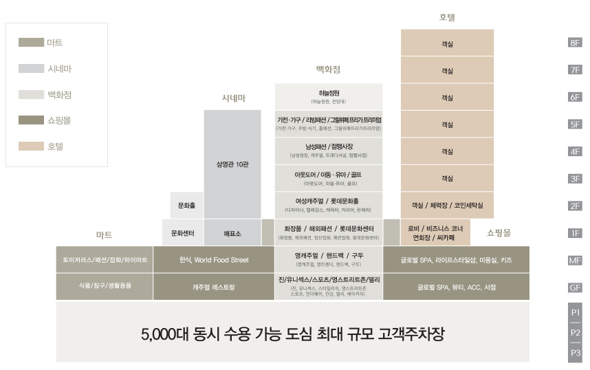 김포 롯데몰은 롯데백화점, 롯데시네마, 롯데호텔, 롯데마트와 쇼핑몰로 이루어져있고 대부분의 음식점은 MF층과 GF층에 위치해있습니다.